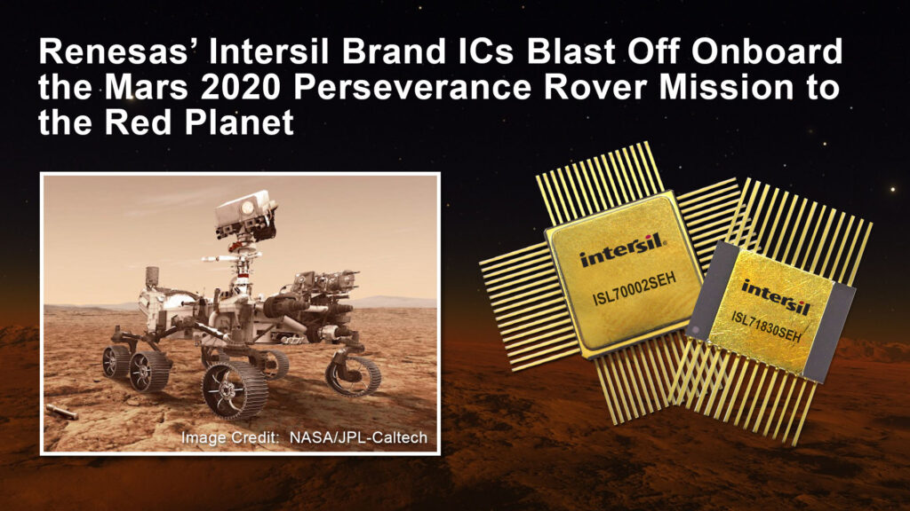 “Our innovative Intersil brand rad-hard-ICs continue to play a key role in NASA JPL’s ongoing Mars exploration missions, which has energized a new generation of engineers, scientists and astronauts,” said Philip Chesley, Vice President, Industrial and Communications Business Division at Renesas. “Renesas is proud and honored to be a part of the Mars 2020 Perseverance mission that will pave the way for future human missions to the Moon and Mars.”