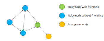 Figure 3 – Low power nodes in friendship with relaying nodes