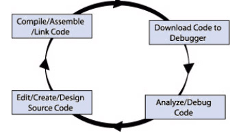 In this process, multiple tools are needed—an editor to write the code, a project manager to organize files and settings; a compiler or assembler to convert the source code to machine code; and some sort of hardware or software that either connects to a target microcontroller, or simulates the operation of a microcontroller. The faster the automotive embedded designer can traverse this loop, the quicker the application will be completed and ready to ship. This loop will be followed many times, for typos found in writing code when bugs arise in the implementation, as optimizations are realized, and as the performance of the application is adjusted