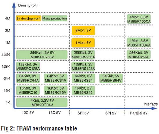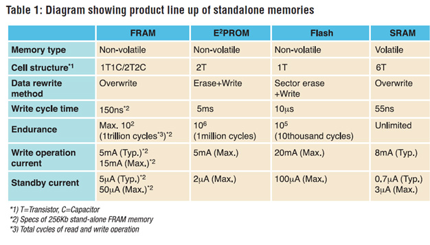 FRAM, which has E2PROM’s non-volatility and static RAM’s (SRAM) speed, allows stable supply of products and a system to ensure high reliability.