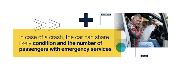 If a crash or near crash were to occur, combining insights from the DMS and OMS can also improve outcomes. Working together, the integrated systems can prioritize airbag deployment according to where occupants are sitting, assess driver and occupant conditions – even checking for vital signs if biometrics are monitored – and share key information such as the likely condition and number of passengers with emergency services.