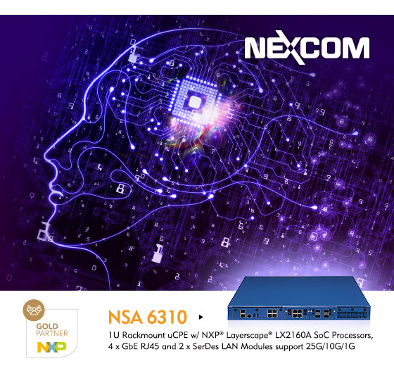 TAIPEI, March 18, 2020 /PRNewswire/ — NEXCOM, the leading provider of network communication appliances and uCPE, introduces the NSA 6310, based on NXP® Semiconductors’ latest multi-core Layerscape® LX2160A platform. The NSA 6310 offers better performance and pricing than the market’s existing solutions and also fulfills telecom and IoT operators’ demand for multi-technology and edge computing white box solutions to address operational environment and business needs.