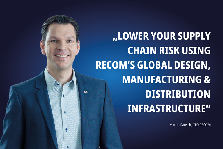 Martin Rausch (CTO): “We need two things to achieve this goal and go full force with the energy we have at our disposal throughout the RECOM group: Professional organization with people that can take personal responsibility and think in a team, and efficient global processes serving our independent units. This will involve striking a balance between utilizing existing resources to the full and exploring and developing new markets.”