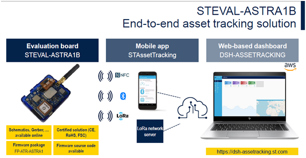 The STEVAL-ASTRA1B development kit is a reference design, which supports multi-connectivity wireless technologies in a single node(LoRa, Bluetooth LE, GPS and NFC).