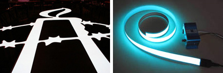 Architecture, Automotive, Advertising, Interior Design, Exhibitions, Events, Marine, Point of Sale, Hotels, Bars, Restaurants, around staging and entertainment areas, Emergency Egress and Health and Safety are just a few of the sectors benefitting from this exciting, innovative light source. And, imagine your individualized creative sign artwork with animated illumination, to command attention at a point of purchase or anywhere you need it. This too can be manufactured using the EL product, producing something that is truly eye catching
