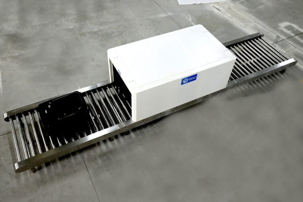 UVC Baggage Conveyor for the commercial establishment like malls, hospitals, airports etc. The working mechanism of the product is as under: