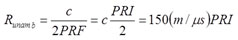 Radar range resolution is determined by the pulse width for e.g. a 1μs pulse has a length in space of 150 m and therefore can’t resolver distance less than 150m. The range beyond which targets appear as a second-time-around echo is the maximum unambiguous range.Therefore, long-range radars use very long pulse repetition times.
